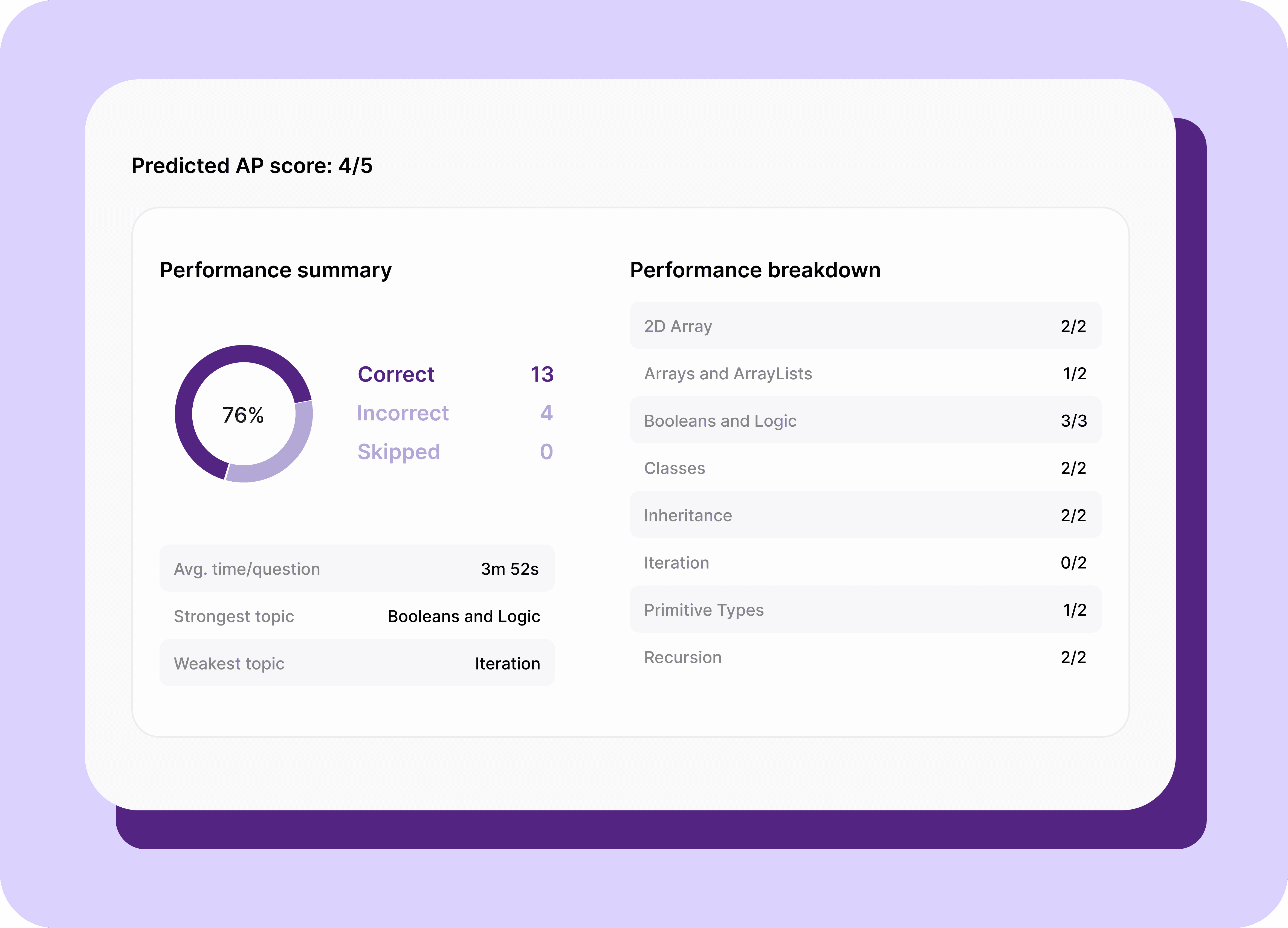 "Amazing source for my AP CSA prep! The AI tutor was very helpful in clearing up any misconceptions and doubts I had."